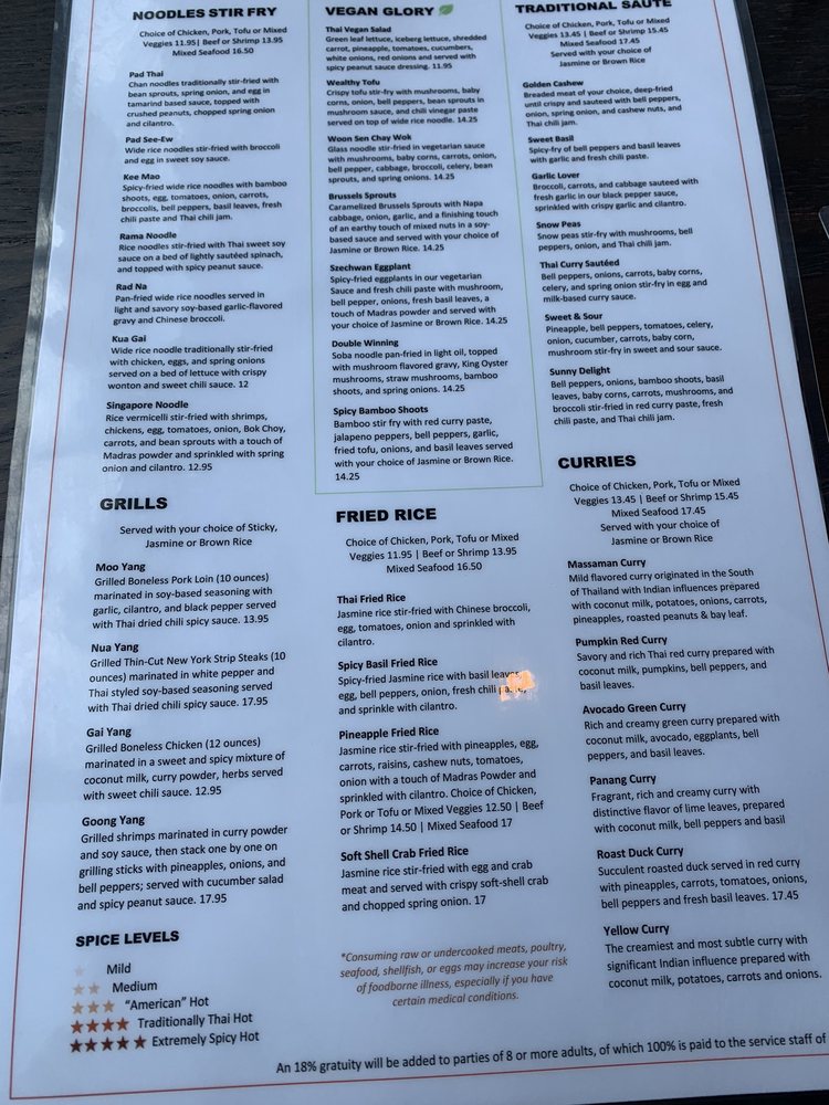 Standout dishes include the chicken yellow curry, celebrated for its rich flavor profile, and the fresh shrimp summer rolls that highlight the kitchen's commitment to using top-notch ingredients. Diners can indulge in favorites like green curry and pineapple fried rice, with options tailored to accommodate food sensitivities.